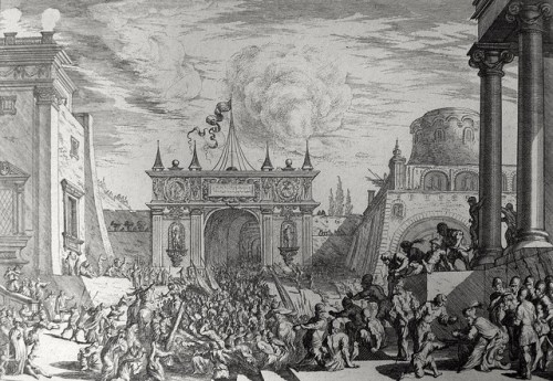 Phillip Medhurst presents John’s Gospel: Bowyer Bible print 5587 Jesus bears his cross John 19:17 De Vos on Flickr. A print from the Bowyer Bible, an extra-illustrated edition of Macklin’s Bible in Bolton Museum and Archives, England.