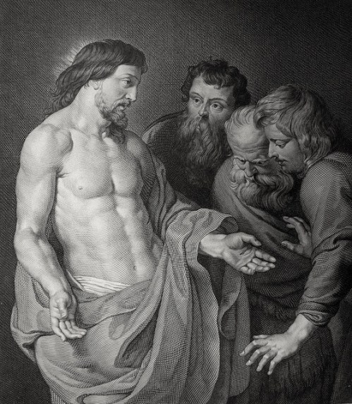 Luke in the Phillip Medhurst Collection 521 The resurrected Christ shows his wounds Luke 24:38-40 after Rubens on Flickr.