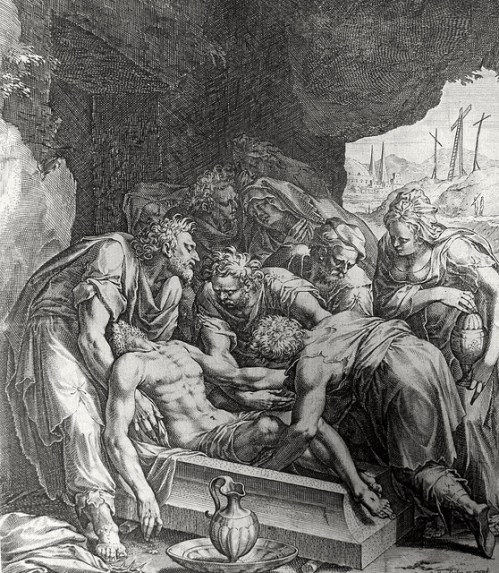Phillip Medhurst presents John’s Gospel: Bowyer Bible print 5632 Jesus is laid in the sepulchre John 19:38-42 Theodor B on Flickr.