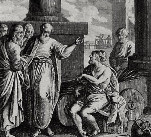 Luke in the Phillip Medhurst Collection 587 Peter and John Acts 3:2-8 Füssli engraved by Harder on Flickr. A print from the Phillip Medhurst Collection of Bible illustrations, published by Revd. Philip De Vere at St. George’s Court Kidderminster.