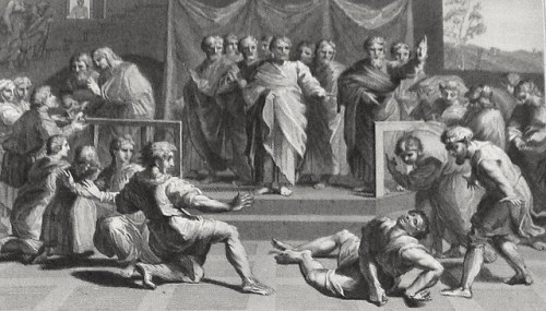 Luke in the Phillip Medhurst Collection 599 The death of Ananias Acts 5:1-6 after Raphael on Flickr. A print from the Phillip Medhurst Collection of Bible illustrations, published by Revd. Philip De Vere at St. George’s Court Kidderminster.