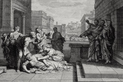 Luke in the Phillip Medhurst Collection 601 The death of Ananias Acts 5:1-10 Mortier’s Bible on Flickr. A print from the Phillip Medhurst Collection of Bible illustrations, published by Revd. Philip De Vere at St. George’s Court Kidderminster.