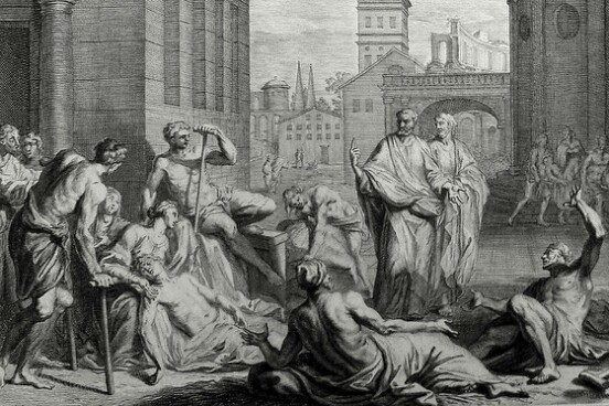 Luke in the Phillip Medhurst Collection 602 The sick are brought into the street Acts 5:15 Mortier’s Bible