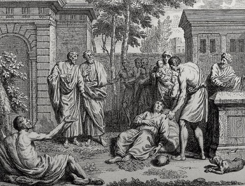 Luke in the Phillip Medhurst Collection 604 The sick are brought into the street Acts 5:16 Dutch Bible on Flickr.