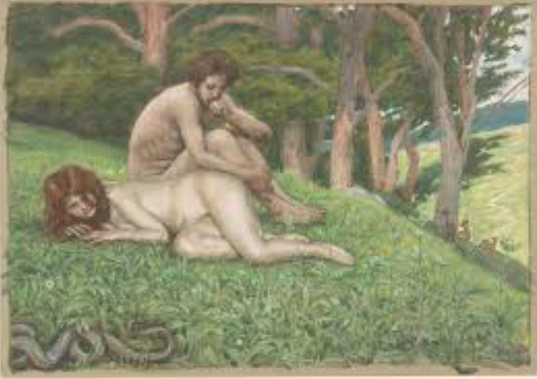 Phillip Medhurst presents 008/788 James Tissot Bible c 1899 Adam and Eve perceive their nakedness Genesis 3:7 Morgan Museum New York