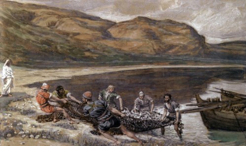 Phillip Medhurst presents 386/392 the James Tissot Jesus c 1896 The Second Miraculous Draught of Fishes John 21:10-11. By (James) Jacques-Joseph Tissot, French, 1836-1902. Opaque watercolour over graphite on paper. 15.6 x 25.4 cms. Brooklyn Museum New York. Purchased in 1900 by public subscription.