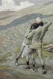 Phillip Medhurst presents 056/788 James Tissot Bible c 1899 Jacob wrestles with an angel Genesis 32:24 Jewish Museum New York