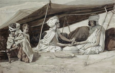 Phillip Medhurst presents 055/788 James Tissot Bible c 1899 Rachel and Leah Genesis 29:16 Jewish Museum New York. By (James) Jacques-Joseph Tissot, French, 1836-1902. Gouache on board.