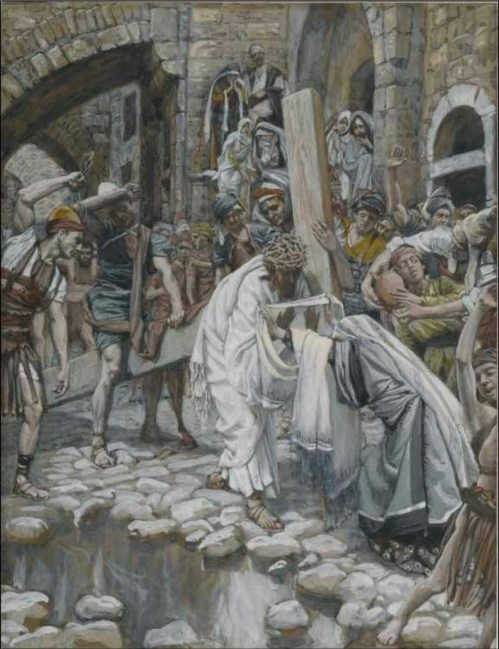 Phillip Medhurst presents 317/392 the James Tissot Jesus c 1896 Saint Veronica. By (James) Jacques-Joseph Tissot, French, 1836-1902. After a painting now in the Brooklyn Museum, New York; chromolithograph from “La Vie de Notre Seigneur Jésus Christ … . avec des notes et des dessins explicatifs par J. James Tissot” 1896-97.