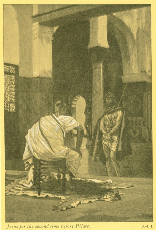Phillip Medhurst presents 301/392 the James Tissot Jesus c 1896 Jesus Before Pilate, Second Interview John 19:8-12. By (James) Jacques-Joseph Tissot, French, 1836-1902. Opaque watercolour over graphite on paper. 22.7 x 15.7 cms. Brooklyn Museum New York.