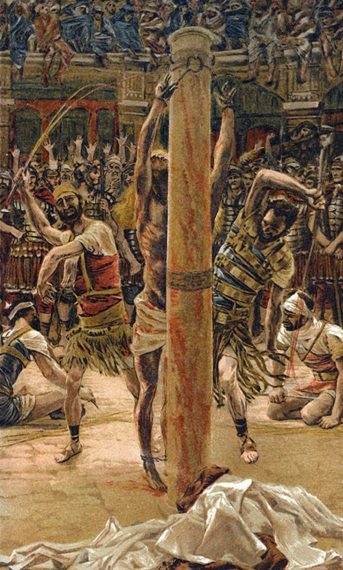Phillip Medhurst presents 295/392 the James Tissot Jesus c 1896 The Scourging of the Back Matthew 27:26. By (James) Jacques-Joseph Tissot, French, 1836-1902. Opaque watercolour over graphite on paper. 37.1 x 22.4 cms. Brooklyn Museum New York.