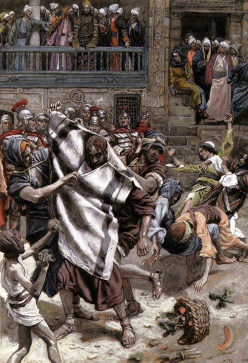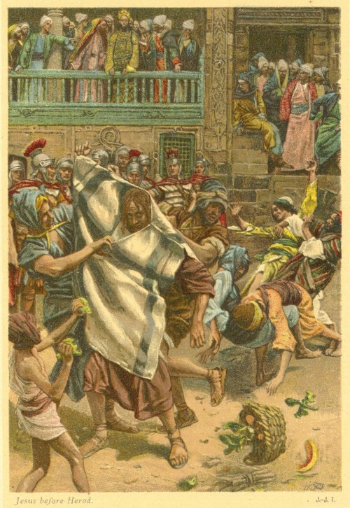 Phillip Medhurst presents 293/392 the James Tissot Jesus c 1896 Jesus Before Herod Luke 23:4-11. By (James) Jacques-Joseph Tissot, French, 1836-1902. After a painting now in the Brooklyn Museum, New York; chromolithograph from “La Vie de Notre Seigneur Jésus Christ … . avec des notes et des dessins explicatifs par J. James Tissot” 1896-97.