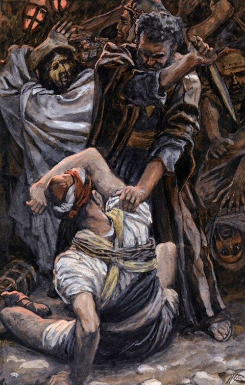 Phillip Medhurst presents 265/392 the James Tissot Jesus c 1896 The Ear of Malchus John 18:10-11. By (James) Jacques-Joseph Tissot, French, 1836-1902. After a painting now in the Brooklyn Museum, New York; photogravure from “La Vie de Notre Seigneur Jésus Christ … . avec des notes et des dessins explicatifs par J. James Tissot” 1896-97.
