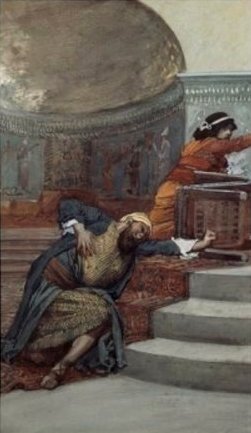 Phillip Medhurst presents 188/788 James Tissot Bible c 1899 Eglon slain by Ehud Judges 3:21 Jewish Museum New York