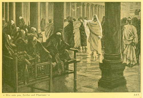 Phillip Medhurst presents 227/392 the James Tissot Jesus c 1896 Woe unto You, Scribes and Pharisees Matthew 23:1-16,33 1886-94. By (James) Jacques-Joseph Tissot, French, 1836-1902. After a painting now in the Brooklyn Museum, New York; photogravure from “La Vie de Notre Seigneur Jésus Christ … . avec des notes et des dessins explicatifs par J. James Tissot” 1896-97.