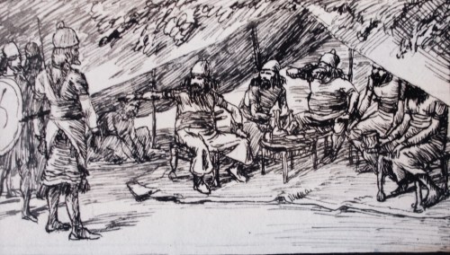 315.1/402 Benhadad and the kings drinking in the tent (1 Kings 20:16) drawing by James Tissot at the John Rylands Library file created by Phillip Medhurst: