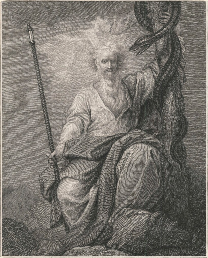 Moses showing the Brazen Serpent. 30 August 1793. Print. Line engraving, engraved by John Hall. Published by Thomas Macklin. 310 mm x 247 mm. Royal Academy of Arts collection.