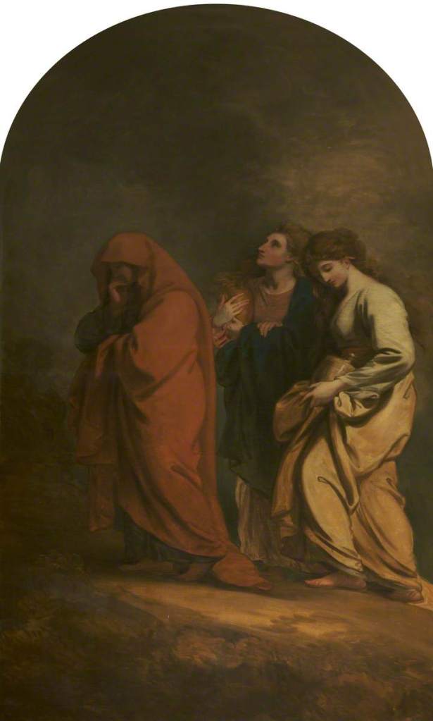 The Three Marys at the Sepulchre. 1783. Oil on canvas. 157.5 x 84 cms. The design for the right-hand light of West’s great east window in St George’s Chapel, Windsor. National Trust, Tatton Park, Cheshire.