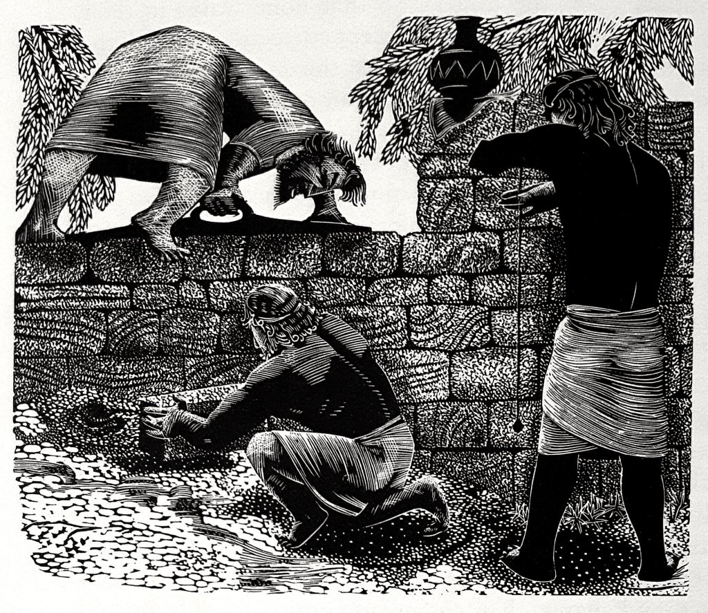 Wood engraving by Sarah van Niekerk (British 1934-2018) in The Reader’s Digest Bible (illustrated edition) 1990
