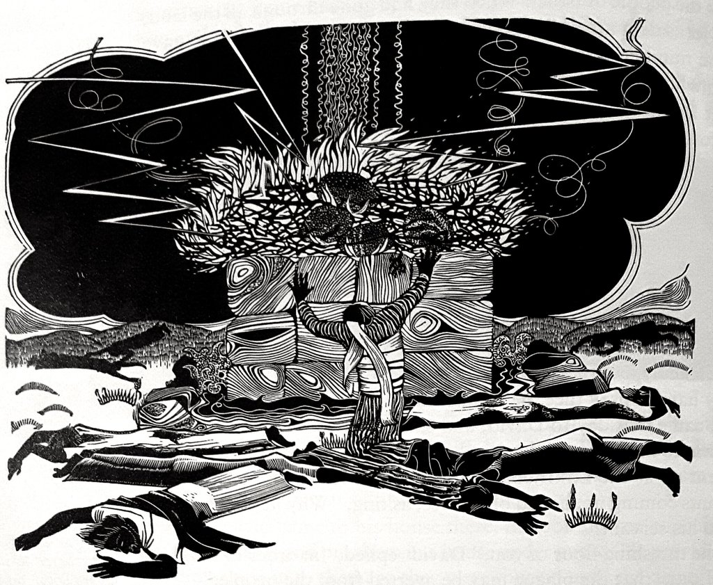 Wood engraving by Sarah van Niekerk (British 1934-2018) in The Reader’s Digest Bible (illustrated edition) 1990