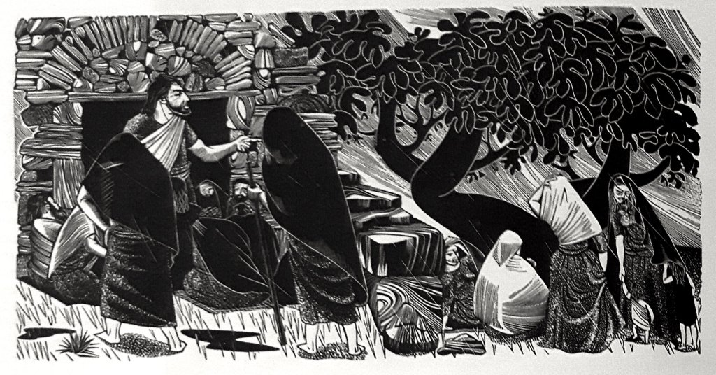 Wood engraving by Sarah van Niekerk (British 1934-2018) in The Reader’s Digest Bible (illustrated edition) 1990