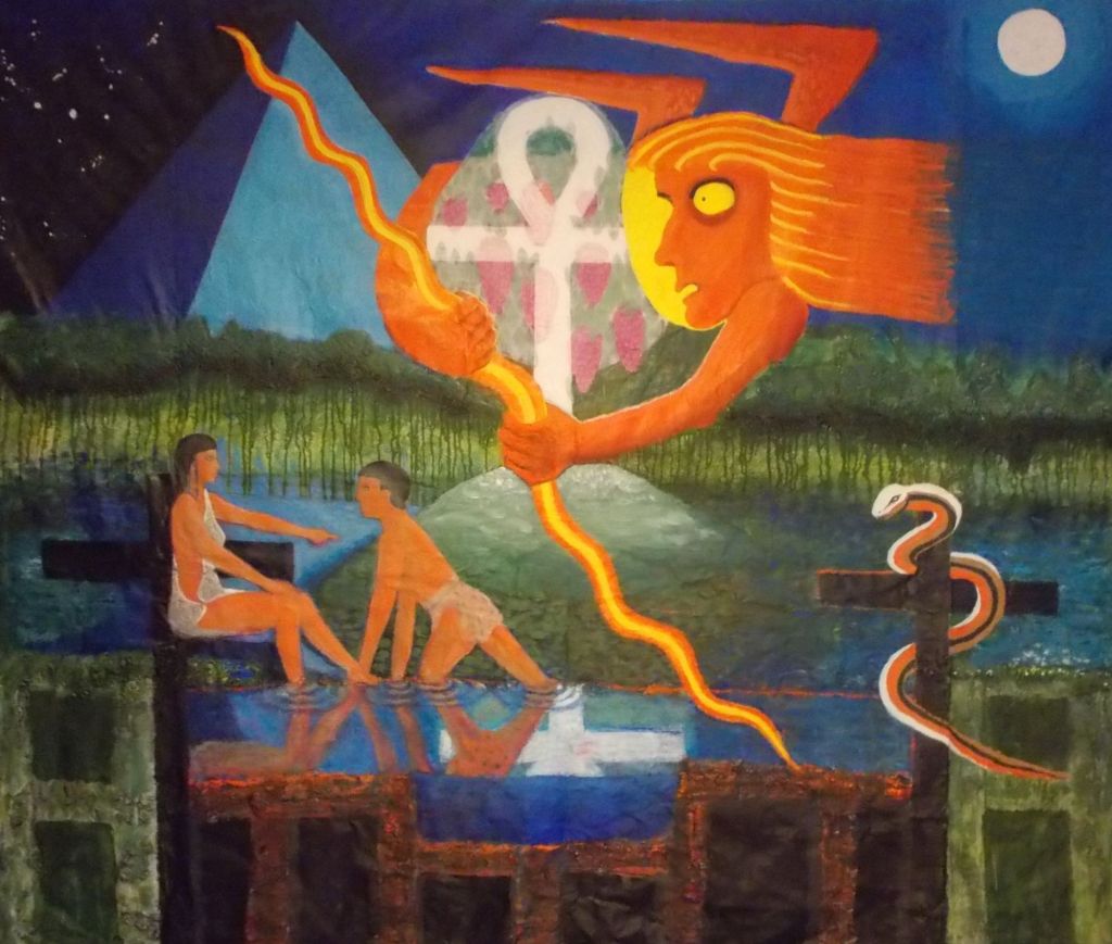 “The Tree of Life (Genesis 3:24)” by Phillip Medhurst 2014. Oil and acrylic on canvas. 6 x 6 ft. At St. George’s Court, Kidderminster, England.