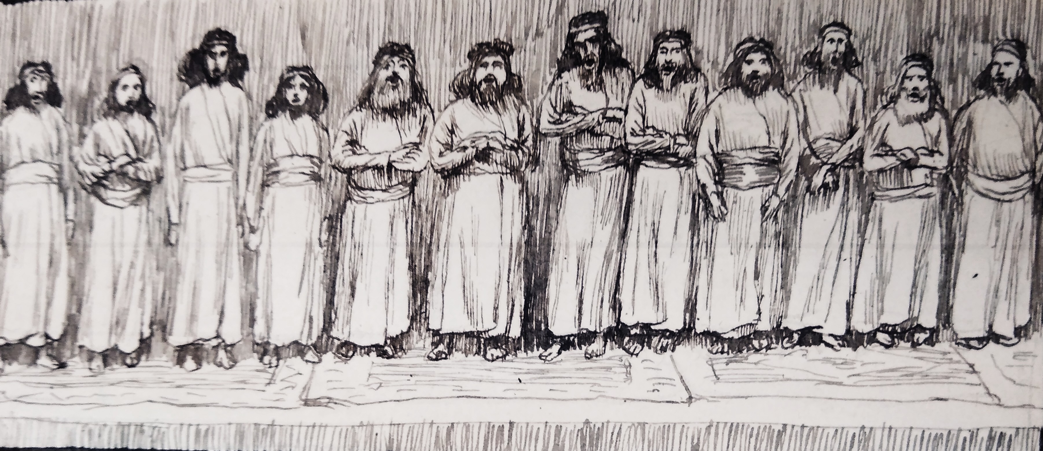 340.1/402 The treasurers and the keepers of the vases (1 Chronicles 26:29) drawing by James Tissot at the John Rylands Library file created by Phillip Medhurst: