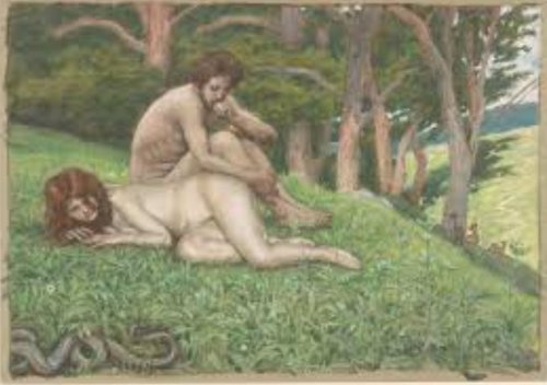 Phillip Medhurst presents 009/788 James Tissot Bible c 1899 Adam and Eve perceive their nakedness Genesis 3:7 Morgan Museum New York