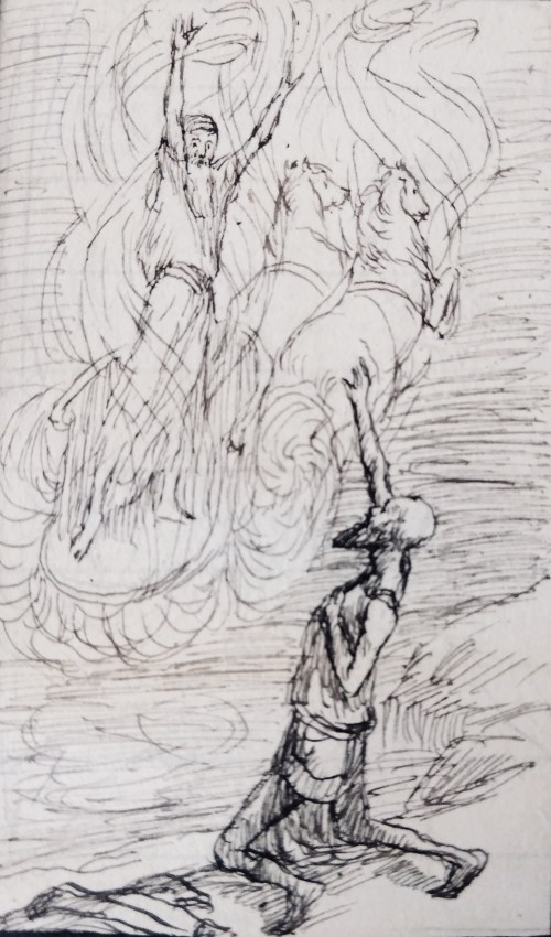 319.1/402 Elijah ascends in a chariot of fire (2 Kings 2:14) drawing by James Tissot at the John Rylands Library file created by Phillip Medhurst: