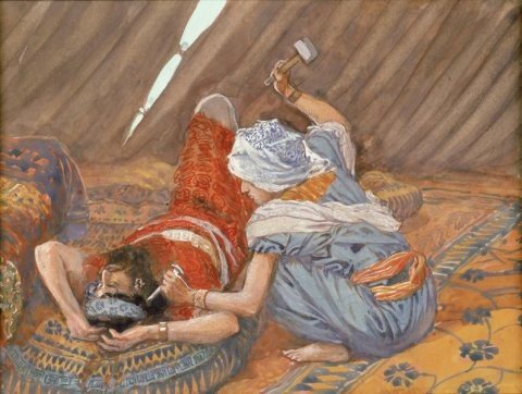 323.2/402 The death of Jezebel (2 Kings 9:33) gouache on board by Charles Hoffbauer after James Tissot Jewish Museum New York: