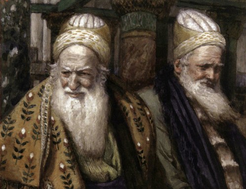 Phillip Medhurst presents 274/392 the James Tissot Jesus c 1896 Annas and Caiaphas. By (James) Jacques-Joseph Tissot, French, 1836-1902. After a painting now in the Brooklyn Museum, New York; chromolithograph from “La Vie de Notre Seigneur Jésus Christ … . avec des notes et des dessins explicatifs par J. James Tissot” 1896-97.
