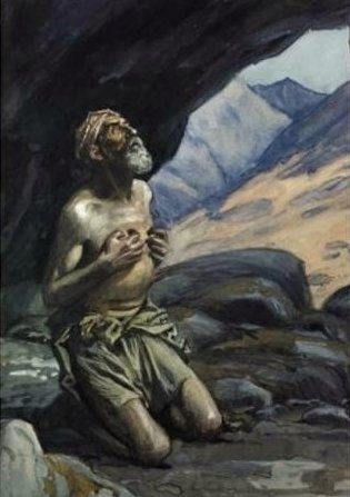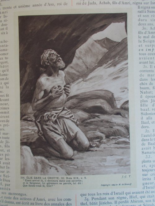 314.1/403 Elijah dwells in a cave (1 Kings 19:9) drawing by James Tissot at the John Rylands Library file created by Phillip Medhurst: