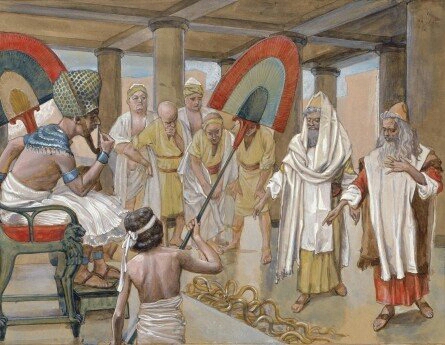 Phillip Medhurst presents 113/788 James Tissot Bible c 1899 The rod of Aaron devours the other rods Exodus 7:12. By a follower of (James) Jacques-Joseph Tissot, French, 1836-1902. Gouache on board.