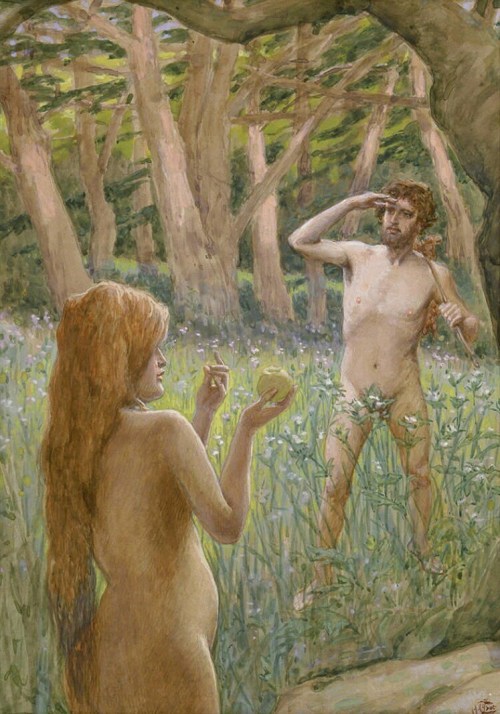 Phillip Medhurst presents 007/788 James Tissot Bible Adam Is Tempted by Eve Genesis 3:1-6 c 1899 Gouache 25 × 17.6 cm Jewish Museum New York