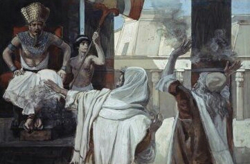 Phillip Medhurst presents 124/788 James Tissot Bible c 1899 Pharaoh and his dead son Exodus 12:31 Jewish Museum New York. By a follower of (James) Jacques-Joseph Tissot, French, 1836-1902. Gouache on board.