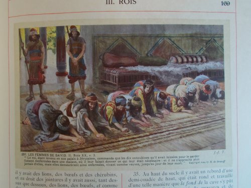 The paintings were reproduced in “La Sainte Bible : Ancien Testament . . . / Compositions par J.-James Tissot” with preface by A. D. Sertillanges, introduction by M. de Brunoff and the French version of L. J. Lemaistre de Saci. (Sertillanges, Antonin Gilbert 1863-1948; Le Maistre de Sacy, Isaac-Louis, 1613-1684) 2 vols.: illus., plates: 4to. 40 plates, 360 illustrations to text, by James Tissot (Tissot, Jacques-Joseph, French, 1836-1902). Paris: M. de Brunoff & Cie, 1904.