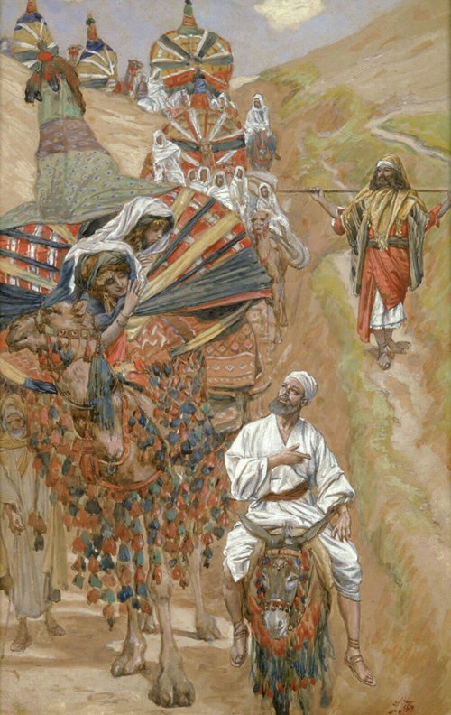 Phillip Medhurst presents 048/788 James Tissot Bible c 1899 Rebecca Meets Isaac by the Way Genesis 24:65 Jewish Museum New York. By (James) Jacques-Joseph Tissot, French, 1836-1902. Gouache on board.