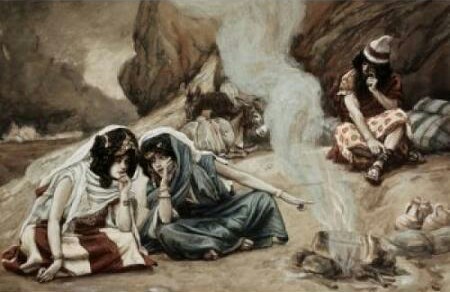 Phillip Medhurst presents 042/788 James Tissot Bible c 1899 The daughters of Lot Genesis 19:30 Jewish Museum New York. By (James) Jacques-Joseph Tissot, French, 1836-1902. Gouache on board.