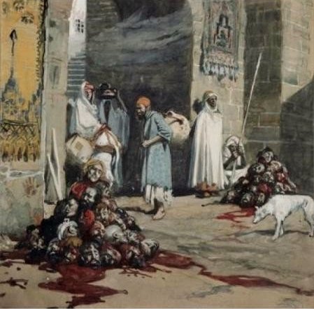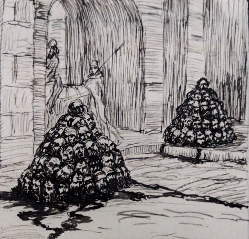 324.1/402-two-heaps-of-skulls-at-the-city-gate-2-kings-10:8-drawing-by-james-tissot-at-the-john-rylands-library-file-created-by-phillip-medhurst: