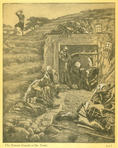 Phillip Medhurst presents 366/392 the James Tissot Jesus c 1896 Jesus in the Sepulchre John 19:42. By (James) Jacques-Joseph Tissot, French, 1836-1902. After a painting now in the Brooklyn Museum, New York; photogravure from “La Vie de Notre Seigneur Jésus Christ … . avec des notes et des dessins explicatifs par J. James Tissot” 1896-97.
